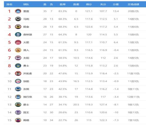 今日比赛后火箭、湖人排名互换,快船、灰熊排名互换,其他西部球队排名不变。