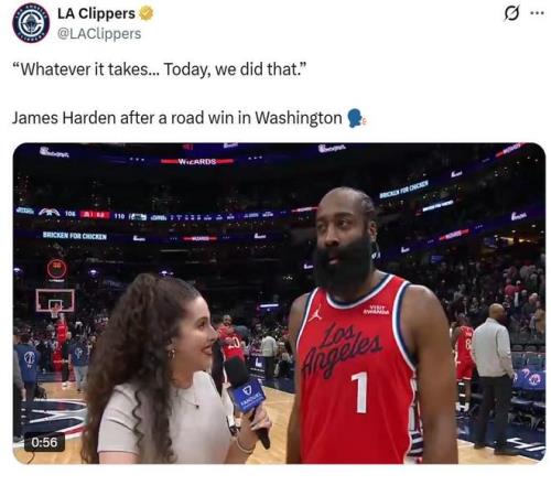 在这种情况下,快船队本场外线又失准,好在35岁哈登梦回巅峰,最终率队以110-106有惊无险击败奇才拿下6连胜。