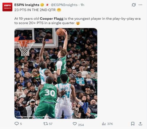 13.弗拉格本赛季两次40+超过杜兰特、文班亚马等多位球星;